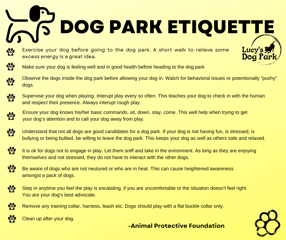 Lucy's Dog Park is open to the public. The dog park committee has fund-raised enough to install phase 1, which will include the fence, signage, waste disposal stations, and ground work. The dog park committee is continuing to work to add amenities to the park, if you would like to help with fundraising please email: info@dexterpark-rec.com for more information. The Dog Park has a large dog side and a small dog side. The location of Lucy's Dog Park is 401 West Market Street, Dexter. The park is the area between Southern Bank and Three Rivers Community College.